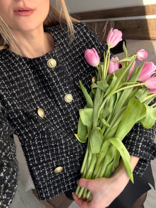 Klasyka z francuskim charakterem. „Coco” to krótki żakiet inspirowany ponadczasową elegancją, który łączy wyrazistą formę z subtelnymi detalami. Strukturalna tkanina z wysoką zawartością wiskozy pięknie układa się na sylwetce, zapewniając komfort i dopracowany efekt.