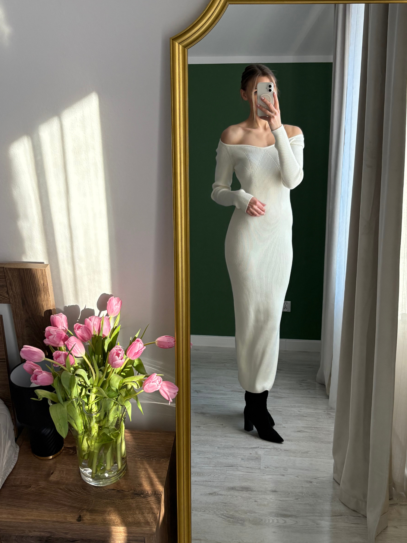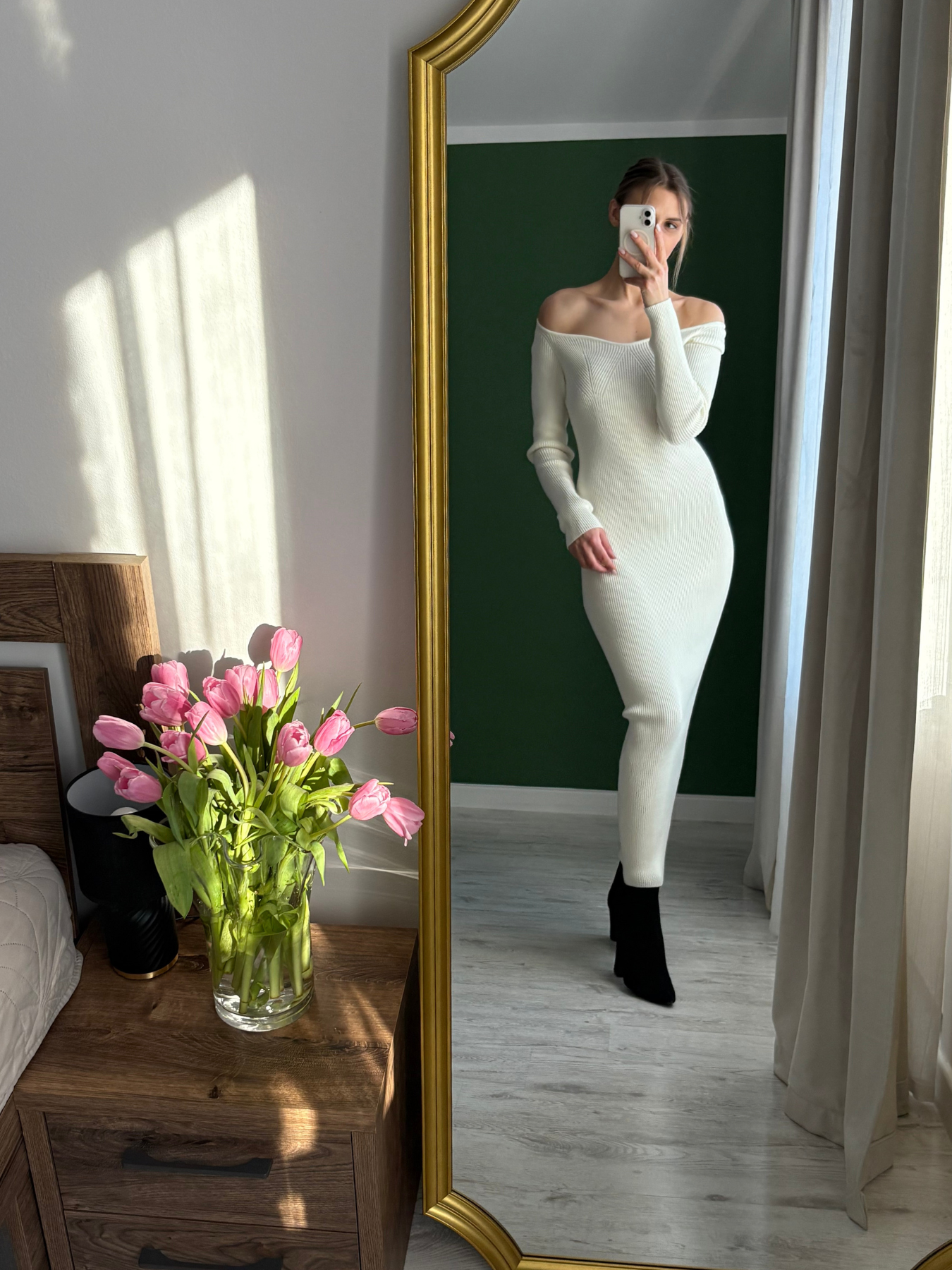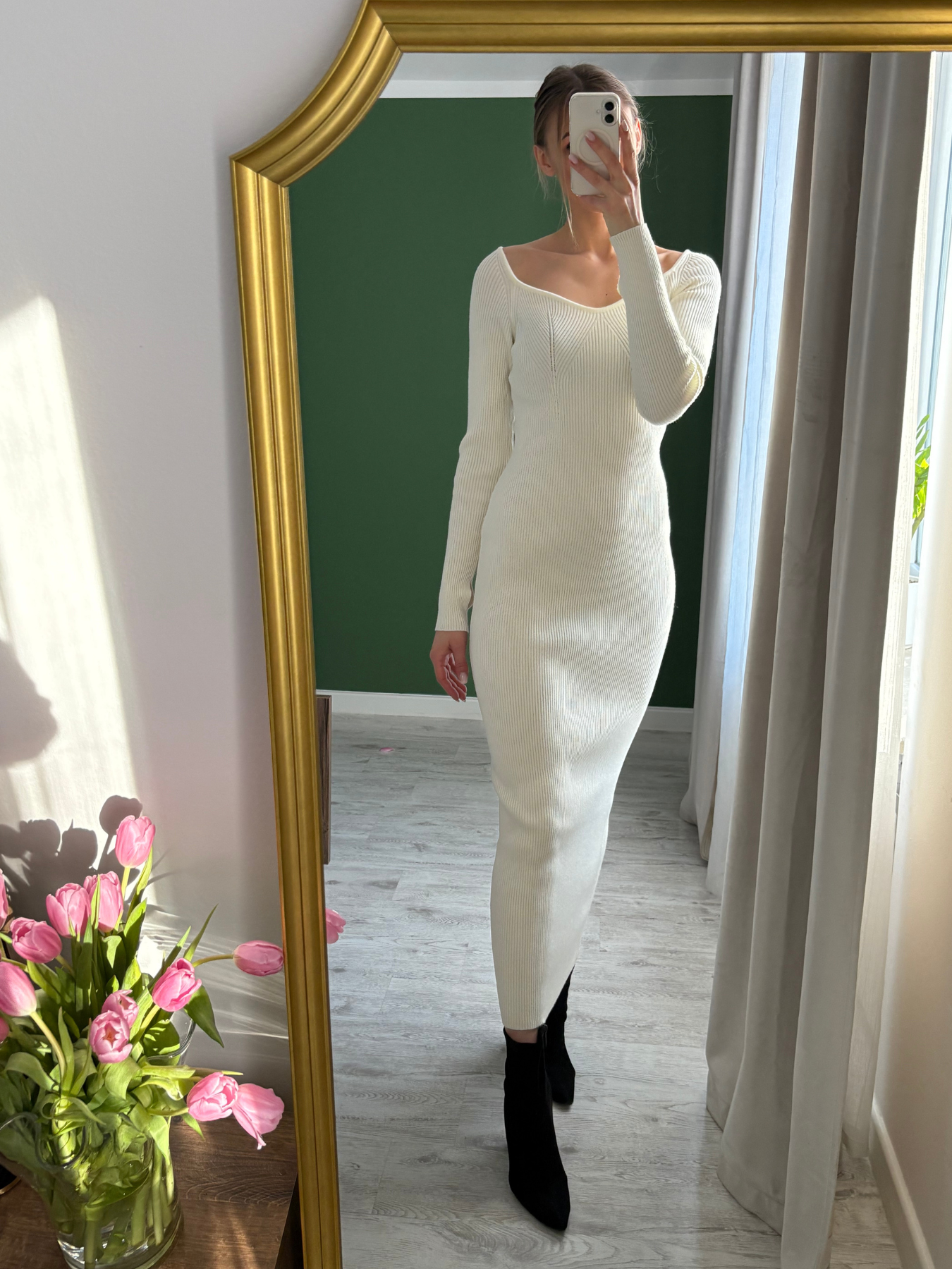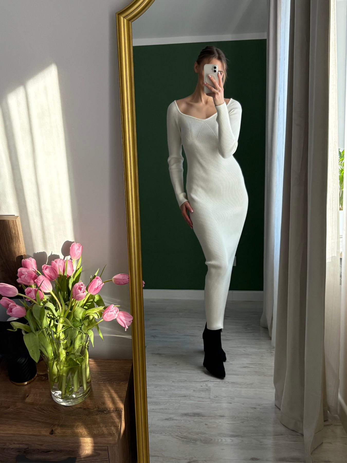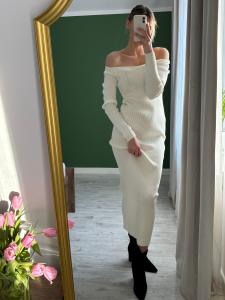 Zabudowana góra z delikatnie odsłoniętą linią ramion nadaje całości kobiecej miękkości, a długość maxi wysmukla sylwetkę i wprowadza nutę wyrafinowania. To model, który możesz stylizować na wiele sposobów — z botkami i płaszczem w wersji dziennej, ze szpilkami i biżuterią w bardziej dopracowanym wydaniu.