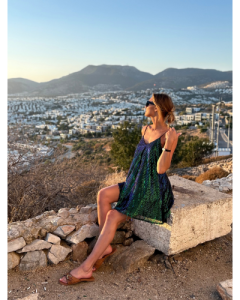 To model stworzony na wieczory, kiedy chcesz przyciągać spojrzenia, ale nadal czuć się swobodnie. Zwiewny, lekko rozkloszowany krój pięknie pracuje w ruchu, a głęboki odcień butelkowej zieleni w połączeniu z subtelnym połyskiem cekinów tworzy efekt elegancji z nutą nowoczesnej zmysłowości.