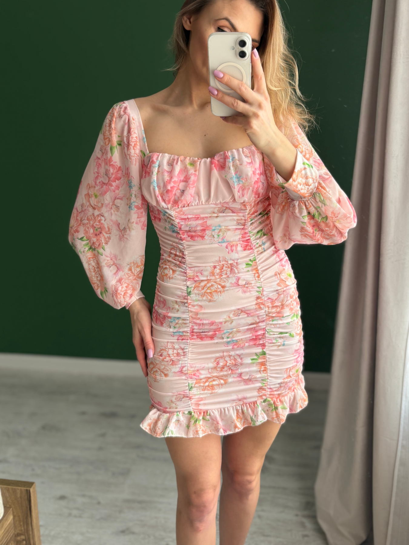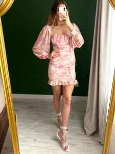 Sukienka stworzona, by zachwycać subtelnym urokiem, kobiecą linią i delikatnym kwiatowym motywem. Jej lekki materiał i dopracowany krój sprawiają, że doskonale sprawdza się na wiele okazji — od spotkań, przez przyjęcia, po codzienne stylizacje pełne świeżości.