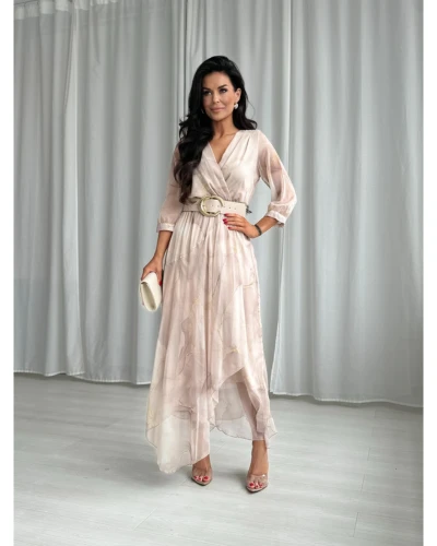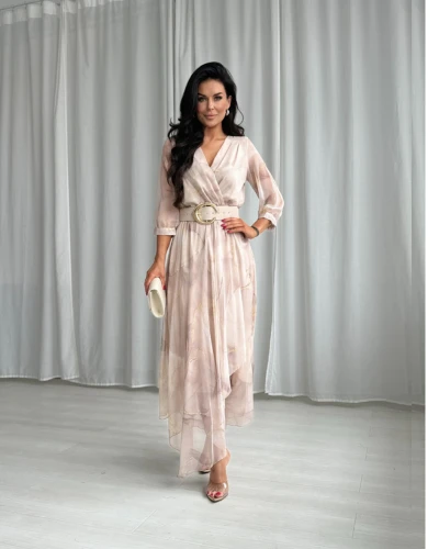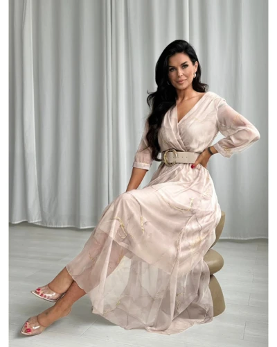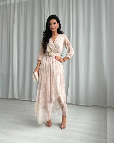 Model stworzony dla kobiet, które cenią lekkość formy i naturalną elegancję. Delikatna, wielotonowa kolorystyka i zwiewna linia sprawiają, że sukienka pięknie układa się na sylwetce i porusza się z każdym krokiem. Dekolt na zakładkę oraz zaznaczona talia nadają całości harmonijnych proporcji i subtelnie podkreślają kobiecą sylwetkę.