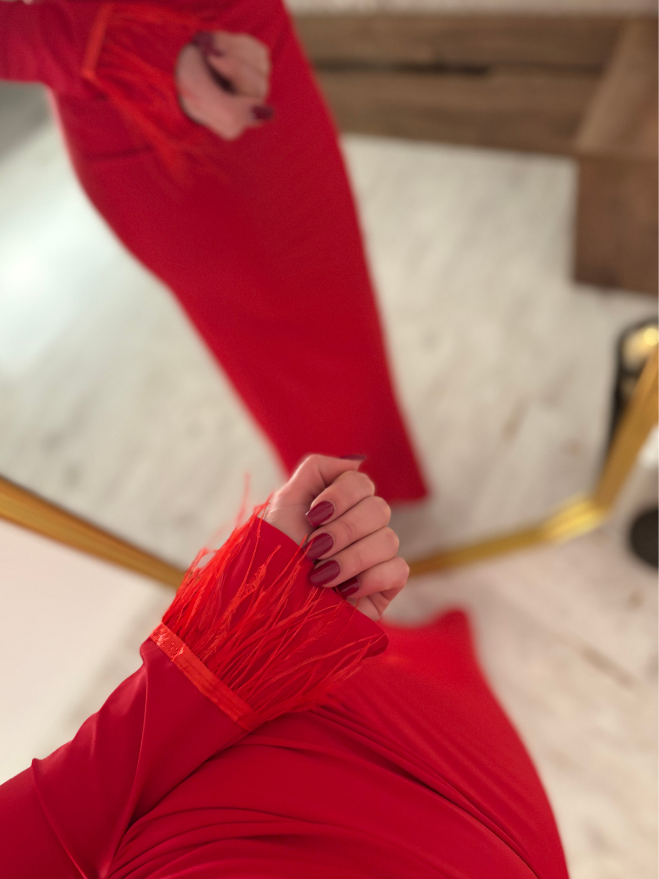 „Naomi” to suknia stworzona dla kobiet, które chcą wejść do pomieszczenia i naturalnie przyciągać spojrzenia. Intensywna, głęboka czerwień podkreśla pewność siebie, a dopracowany, dopasowany fason modeluje sylwetkę w elegancki, wyważony sposób. To połączenie klasy i zmysłowości w najbardziej wyrazistej odsłonie.