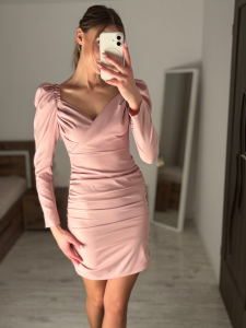 „Paula” to mini, która łączy subtelność koloru z wyrazistą, dopasowaną linią. Pudrowy róż pięknie podkreśla urodę i dodaje stylizacji świeżości, a marszczenia i kobiecy krój modelują sylwetkę, podkreślając talię oraz biodra w elegancki, harmonijny sposób.