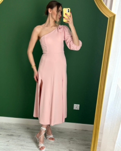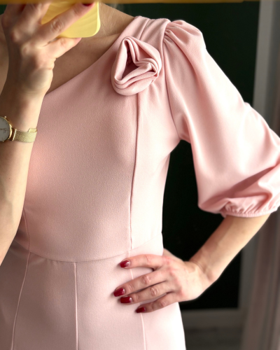 Sukienka asymetryczna „Amelia” pudrowy róż